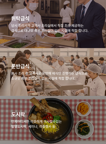다함푸드는 위탁급식, 운반급식, 보온도시락 등 각기 다른 형태의