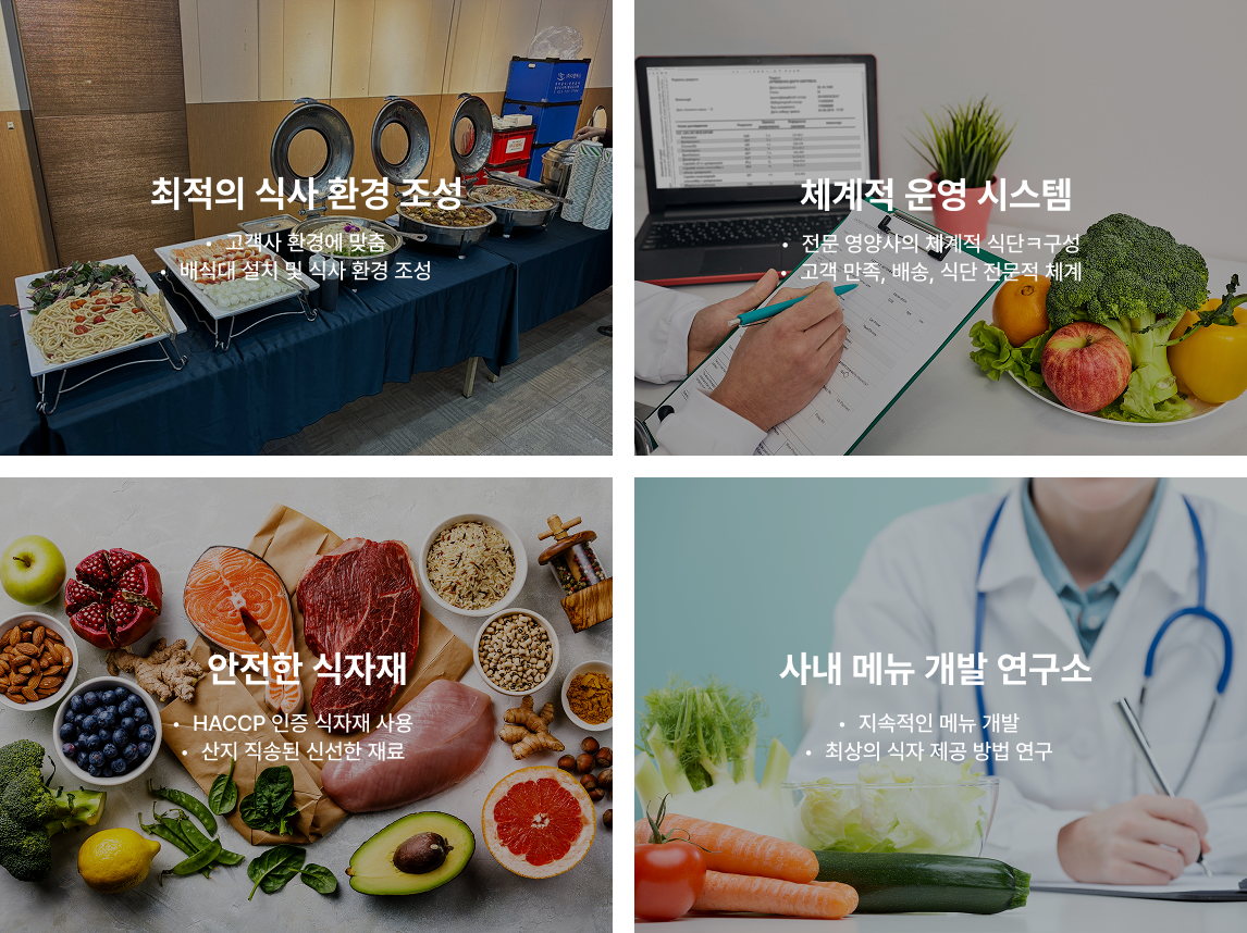 학교, 관공서, 산업체, 기업, 오피스 등 급식이 필요한 다양한 곳에 체계적인 운영 시스템을 갖춘 업체 최적의 서비스와